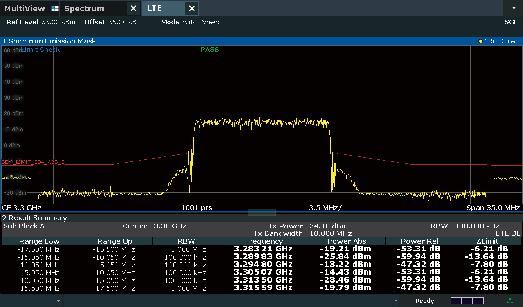 通过频率选择性实现高动态范围:低电平信号也可在强信号附近进行分析,符合标准的ACLR和SEM测量通常只有通过频谱分析仪才能实现