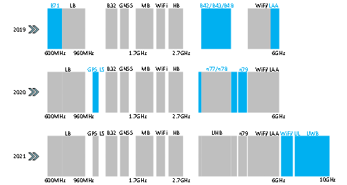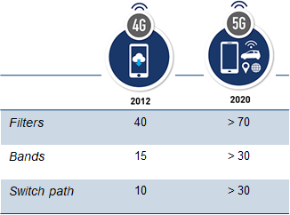 图2 5G手机所需的滤波器和通道数量大幅度增加