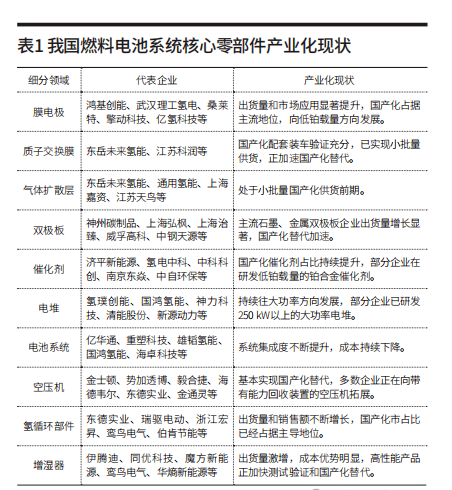 一是充分发挥新型举国体制优势,全面提升氢能基础研究、前沿技术和原始创新能力。采取龙头企业主导,联合氢能产业链上下游企业、科研院所,建设协同创新平台,采用“揭榜挂 帅”、“赛马”等方式,协同开展技术攻关、示范应用和规模推广。在上游环节,重点突破电解水制氢、光催化制氢、新型高效氢气储运、氢气加注设备等关键技术产品;在中游环节,重点提升气体扩散层、复合双极板、氢气调压阀总成、超高功率密度燃料电池堆等综合性能;在下游环节,重点围绕整车耐久性、可靠性、经济性和安全性等提升,持续优化整车设计与集成、燃料电池系统匹配与控制等关键技术指标,推动全产业链关键技术的自主可控。