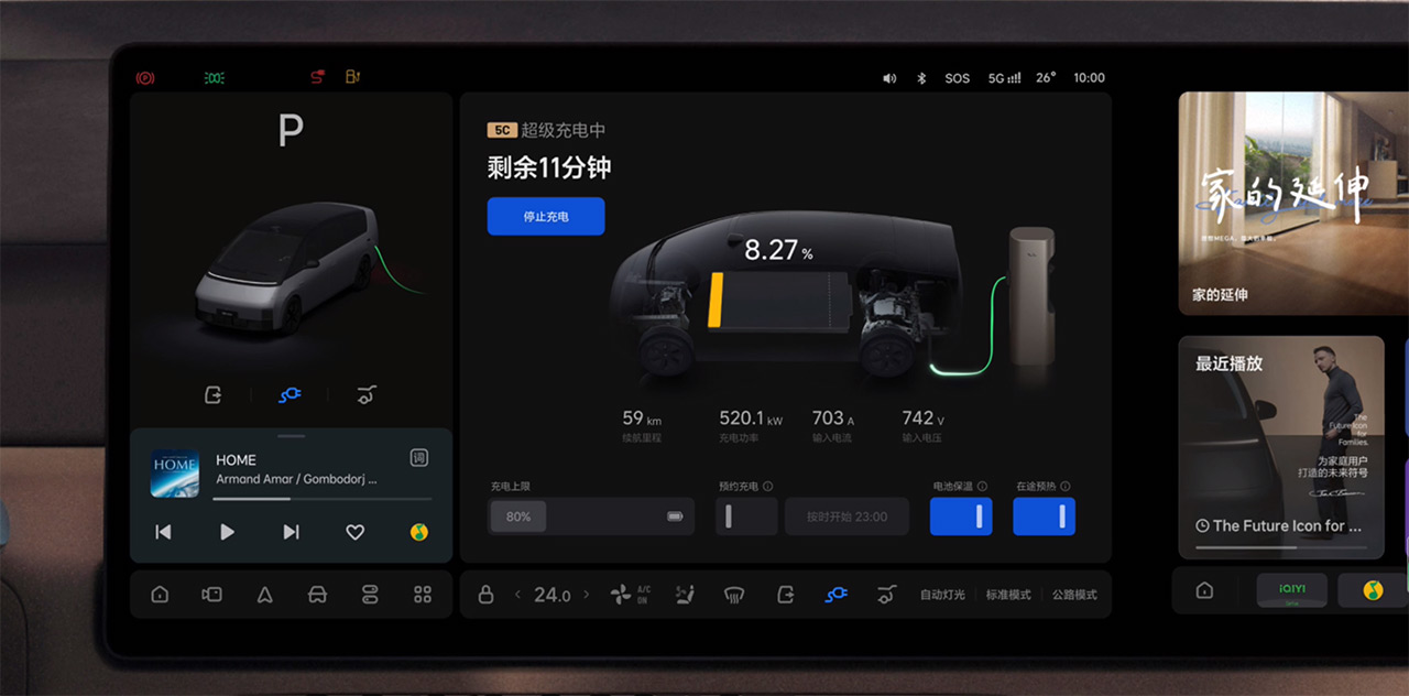 先来看看,理想Mega的5C电池,充电峰值功率超过了500kW,9分半能增加400km的续航,22分钟则可增加600km。