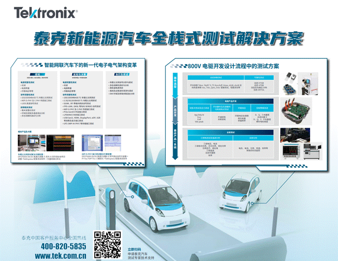第三届汽车测试技术周于2024年3月21日-22日在上海举行,技术领先的测试和测量解决方案提供商泰克携新能源汽车全栈式测试解决方案参与了此次盛会。作为汽车行业值得信赖的测试测量专家,泰克为新能源汽车行业提供全栈式测试解决方案,从初期的器件选择到最终的产品认证多个测试环节助力产业应对AI浪潮下的技术革新。