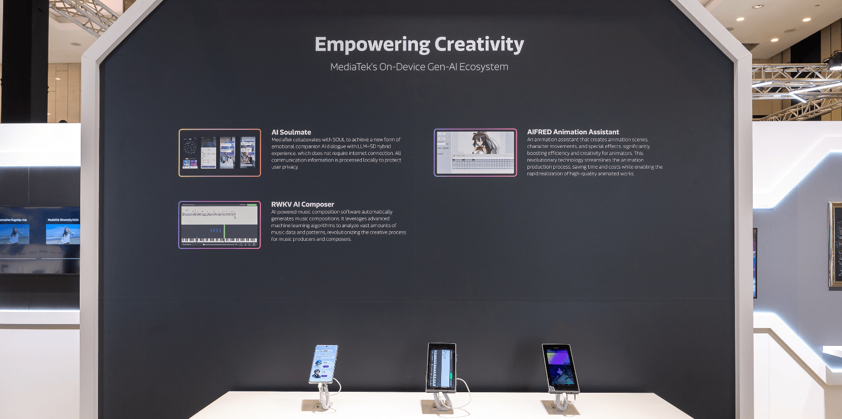 COMPUTEX 2024科技展览近日开幕,联发科展示了一系列先进的AI技术成果和创新生成式AI应用,吸引了大批参观者的关注。现场展示的包括端侧生成式AI技能扩展在内的多种创新技术,为观众带来了极具未来感的手机生成式AI体验。