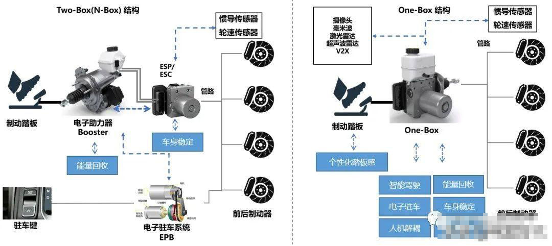 由于技术发展程度的局限,目前出现了两种形式的brake-by-wire系统: