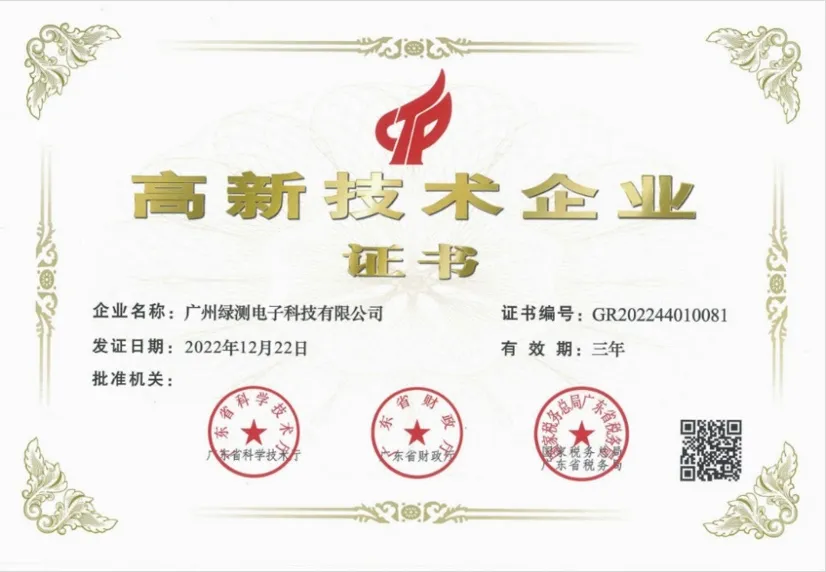 绿测科技在功率半导体及新能源电动汽车、医疗器械行业的不断沉淀,拥有发明专利一项、实用新型/软著等专利技术十余项,并在2022年取得“高新技术企业”证书,2024年取得“创新型中小企业”以及2025年“专精特新中小企业” 称号,同期公司也通过了“ISO9001:2005”、“GB/T 24001-2016”、“GB/T 45001-2020”等相关的认证。