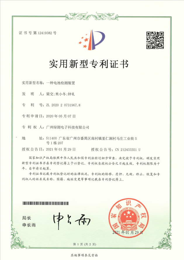 绿测科技在功率半导体及新能源电动汽车、医疗器械行业的不断沉淀,拥有发明专利一项、实用新型/软著等专利技术十余项,并在2022年取得“高新技术企业”证书,2024年取得“创新型中小企业”以及2025年“专精特新中小企业” 称号,同期公司也通过了“ISO9001:2005”、“GB/T 24001-2016”、“GB/T 45001-2020”等相关的认证。