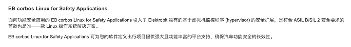 Elektrobit 公司声称目前正与 Arm 和 Canonical 合作,将合作让汽车制造商和供应商能够在高级驾驶辅助系统(ADAS)和自动驾驶汽车(AV)等安全相关的场合中使用该车载解决方案。