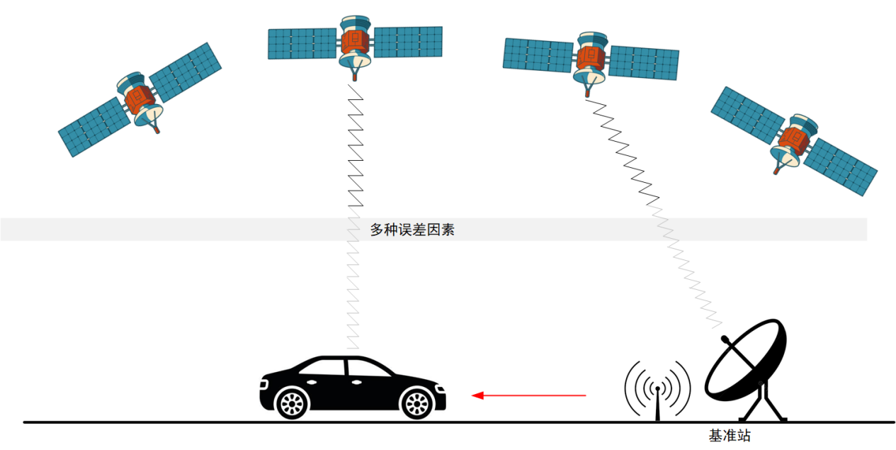 以北斗为代表的GNSS卫星定位技术应用最广泛,定位目标找到4颗卫星的距离,就可以求解出自身的位置。但是,这存在多径效应误差、通道误差、卫星钟误差、星历误差、内部噪声误差等等,定位精度、速度满足不了高阶智驾的需求。