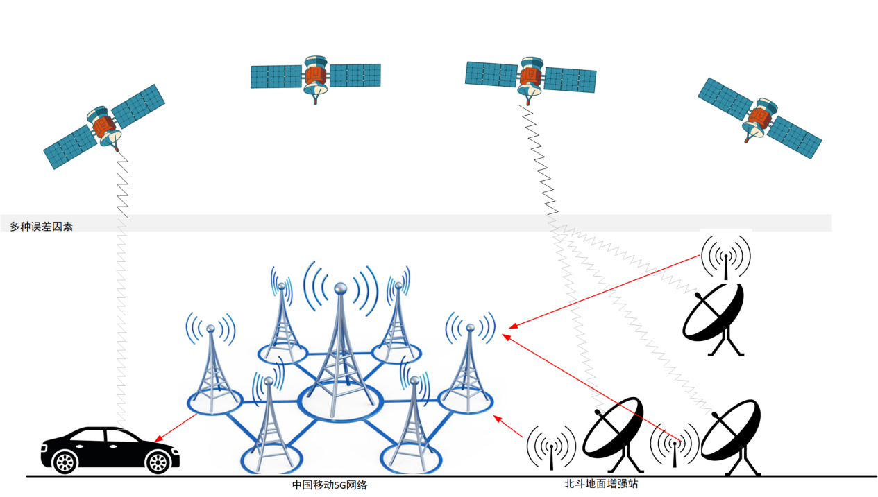 在通信上遇到了瓶颈? 那咱们就找通信专家来帮忙啊! 没错,这就是中国移动牵头的「5G+北斗高精度定位系统」[5]。咱们来看看它的工作原理: