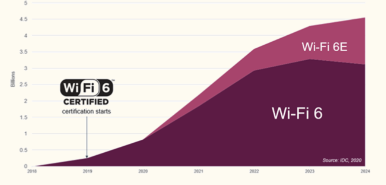 IDC预计2022年WiFi6芯片年出货量将超过10亿颗,56%的新款终端将会支持WiFi6。