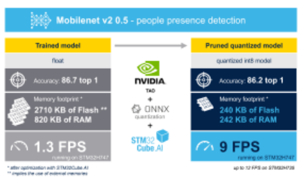 例如,神经网络的量化能实现更强大的边缘AI系统。ST最近与施耐德电气共同演示了一个深度量化的神经网络,在 STM32H7上运行人数统计应用。NVIDIA在运行一个用其TAO工具包优化的网络时,也采用了同款MCU和STM32Cube.AI。同样,新的电机控制算法,如ZeST,让MCU可以更准确、更高效地驱动电机,而新的UI框架优化让MCU可以运行更丰富的图形用户界面,同时还能降低对存储器的需求。例如,ST新版TouchGFX支持矢量字体,ST近期推出的STM32U5具有IP加速的矢量图形处理功能,有了图形界面开发框架的加持,STM32U5的图显效果会更加出色。