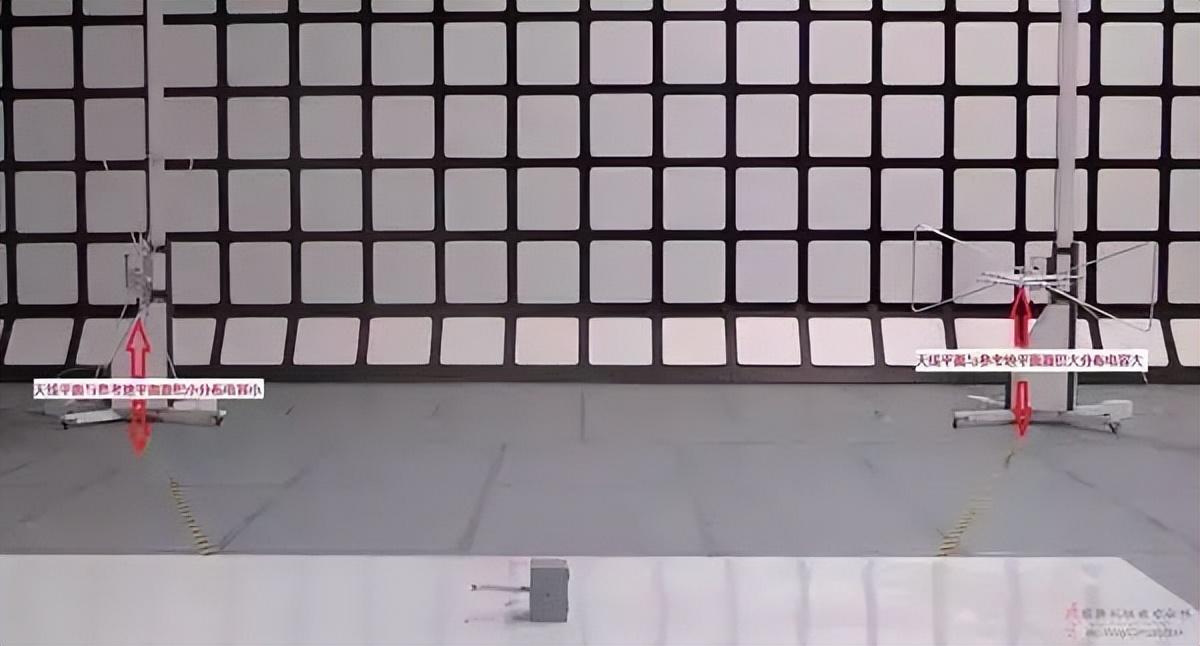 其次,天线塔上面可垂直与水平方向转换的接收天线,接收EUT被测产品方向的发射的线极化波,这里接收天线考量垂直与水平极化方向的最大场强极化值。