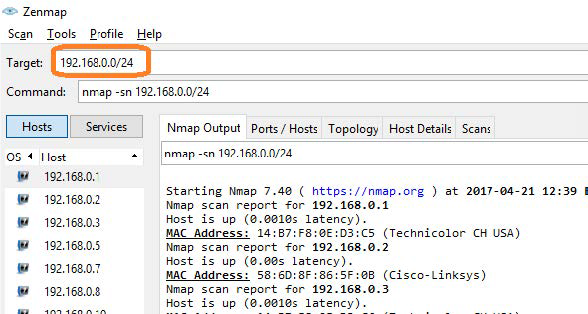 这可以通过使用“/ 24”扩展名设置目标来执行。 这扫描24位例如,