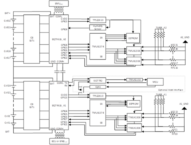 图 2:可堆叠电池管理单元参考设计