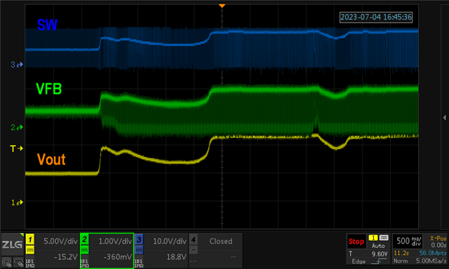可以看出,移除前馈电容之后,可以看出输出电压不会增加,同时也表现出不会损坏后端的MCU。