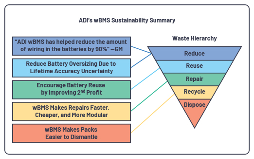 ADI公司接受了wBMS带来的无数设计挑战,通过辛勤工作和投资实现了完整、可扩展的wBMS解决方案,成功满足了从概念到发布全程支持OEM的要求。在此过程中,我们发现了更多提升设计和成本效率的机会,这将为视wBMS为明确发展路径的OEM铺平道路。根据早期的OEM反馈,从长远来看,wBMS预计将更具成本效益和其他优势,这有利于其在电动汽车全行业范围内实施。